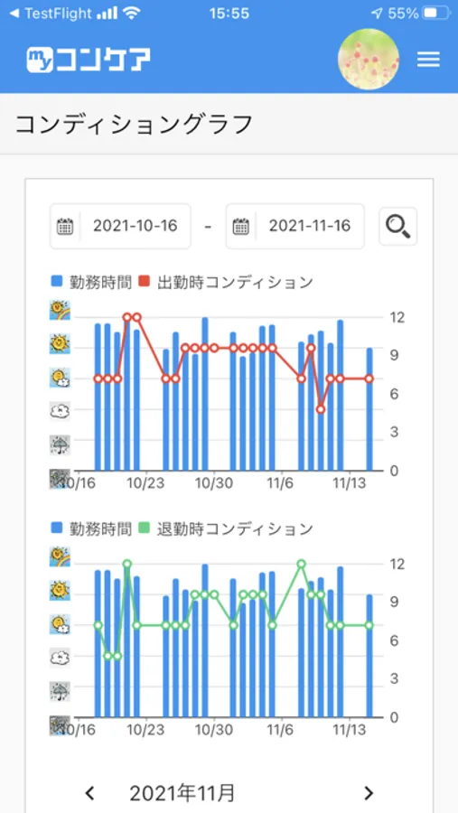 コンケア個人用は、メンタル天気予報コンケアサービスをご契約中の契約団体所属ユーザー様個人用のメンタルコンディションをレコーディングするためのアプリです。