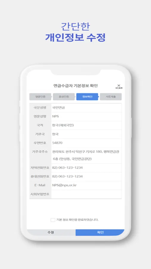 The Contact-free NPS Verification Service App is specifically designed for foreigner (including Overseas korean) and overseas Korean national to help them report changes quickly and easily.
