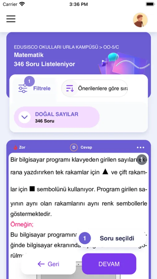 Öğrencilerin eksik ve ihtiyaçları doğrultusunda özelleştirebilen zengin soru havuzları, gelişmiş ölçme değerlendirme sistemi ile tam ve kalıcı öğrenmeyi sağlar.