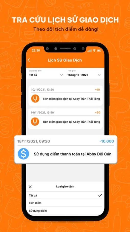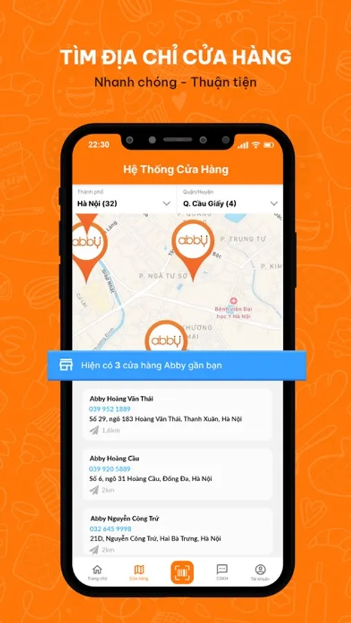 App hỗ trợ bạn tích điểm, sử dụng điểm, tìm cửa hàng gần nhất, tìm kiểm sản phẩm, đặt hàng và nhanh chóng liên hệ với bộ phận chăm sóc khách hàng của Abby