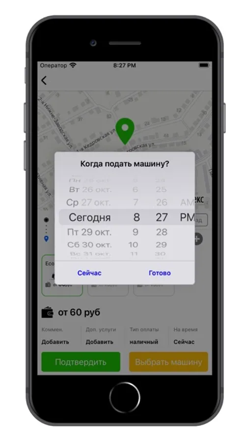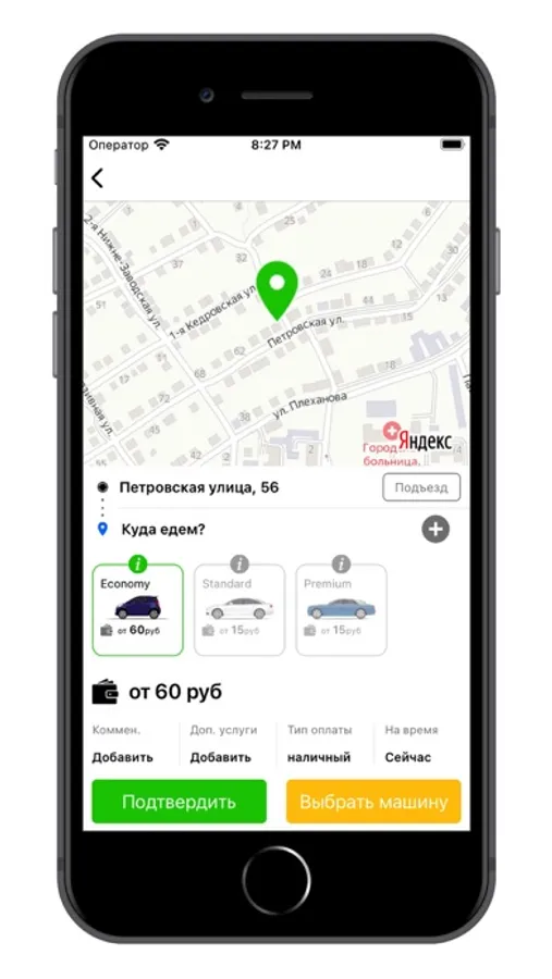 - отображение на карте местонахождения машин таксистов в реальном времени;