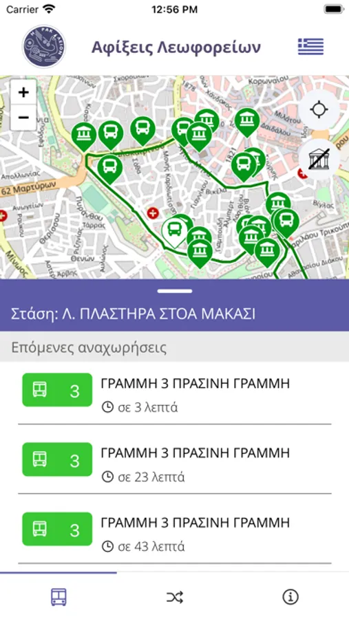 Στο πλαίσιο του έργου αναπτύχθηκαν διαδικτυακή εφαρμογή και εφαρμογή για κινητά που επιτρέπουν τη λήψη πληροφοριών σε πραγματικό χρόνο είτε, μέσω διαδικτύου είτε, μέσω κινητών τηλεφώνων, σχετικά με τους χρόνους άφιξης λεωφορείων από στάσεις καθώς και πληροφορίες γραμμών.