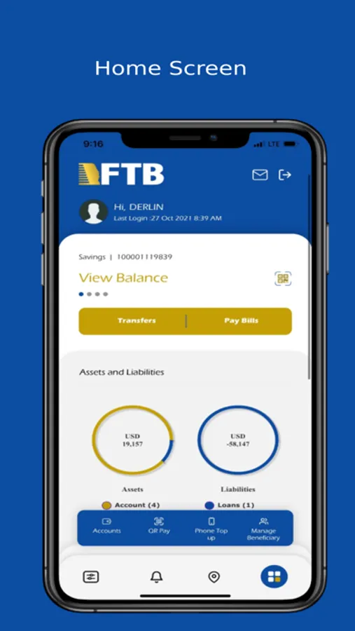 FTB Mobile is the Mobile Banking Application (app) that allows you to view your account information, local and international fund transfer, QR payments, mobile phone top-up, and pay bills with your mobile device. FTB Mobile enables FTB customers to access their funds and perform financial services at any time and anywhere as long as customers have internet access.