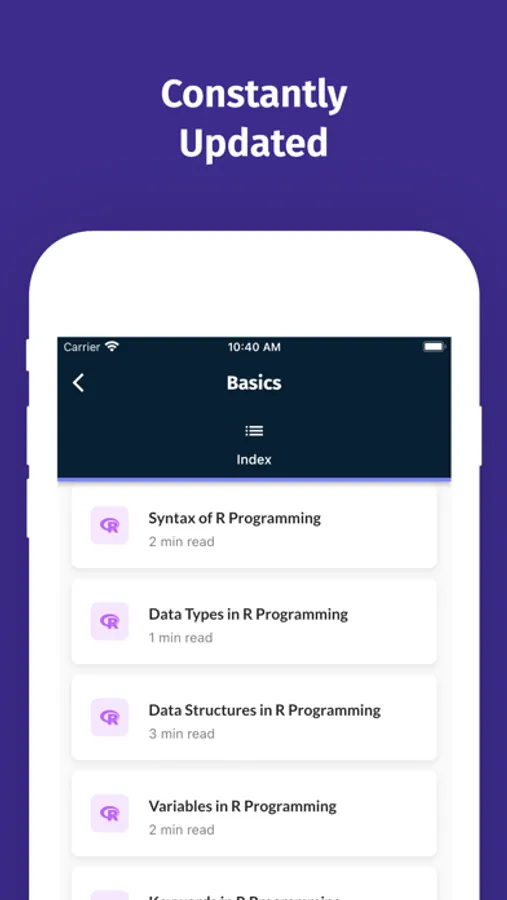 R is great for machine learning, data visualization and analysis, and some areas of scientific computing. This app contains all the major topics of R Programming with Excellent Code Examples and Projects.