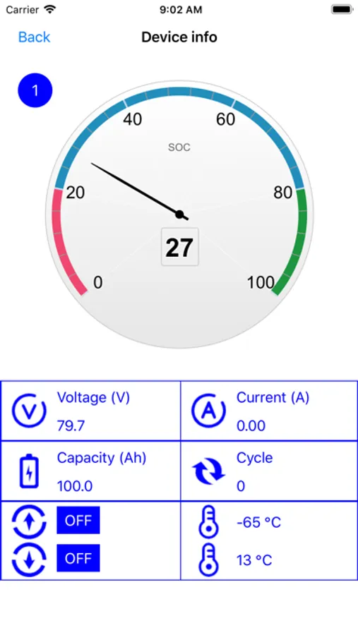 通过手机蓝牙搜索并连接外围BMS设备,采集外围BMS设备的电池数据。采集的数据有SOH,SOC,总电压,总电流,充放电循环次数,电池各个部位的温度,电池中每个电芯的单体电压,电池产品的保护状态和电池产品某些功能是否正常工作的信息。相关的硬件产品就是带电池管理系统的电池保护板。