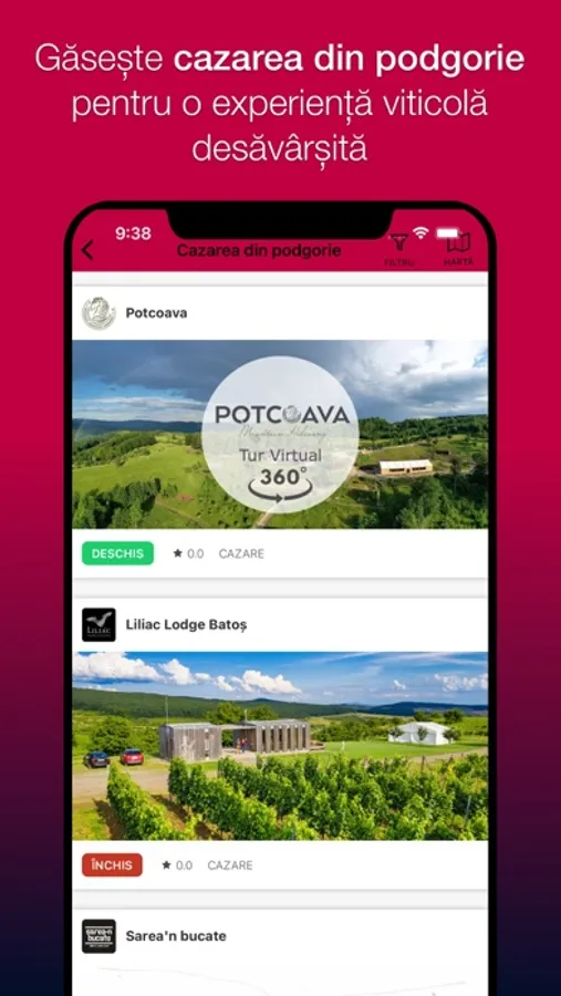• găsești unități de cazare de la crame sau din apropierea acestora