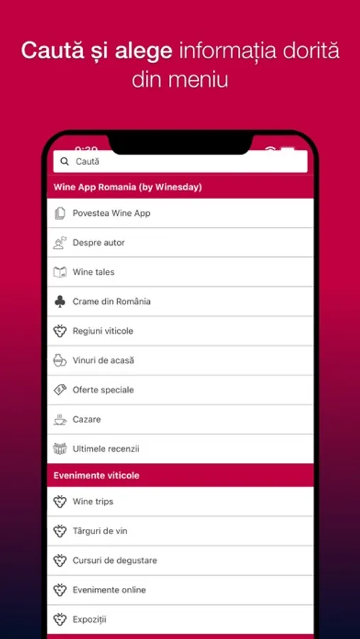 • ai acces la evenimente cu și despre vin ce se desfășoară pe întreg teritoriul țării