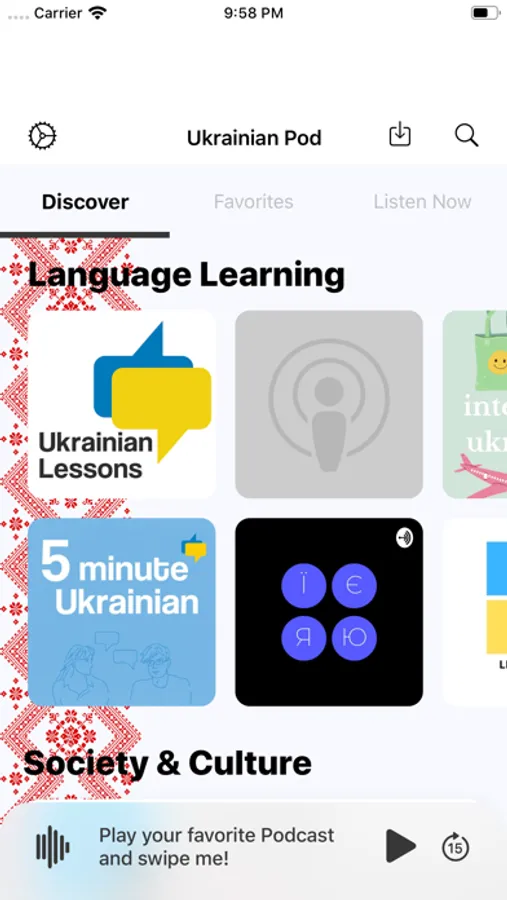 Our application is the classic "Language Learning 101" realization for Ukrainian. Learn language via listing podcasts - language, cultural, news etc. Dive-into language with native speakers, who sharing with listeners their language skills, cultural moments, news reviews and many other themas.
