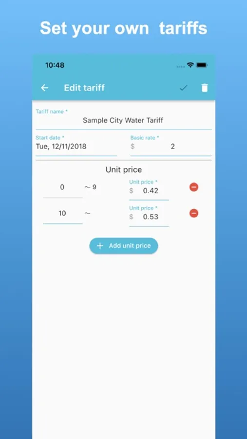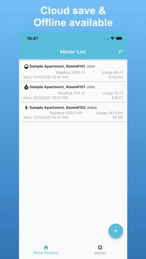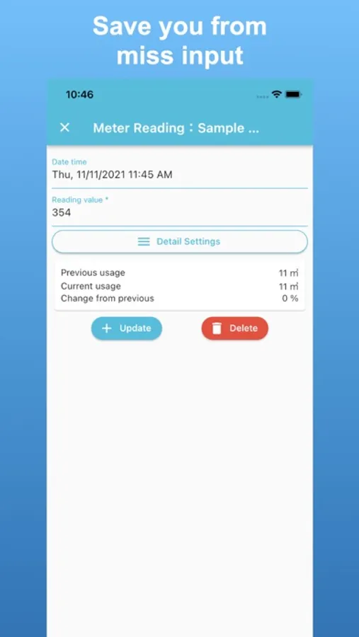 * Display of the difference from the previous usage to prevent incorrect meter reading