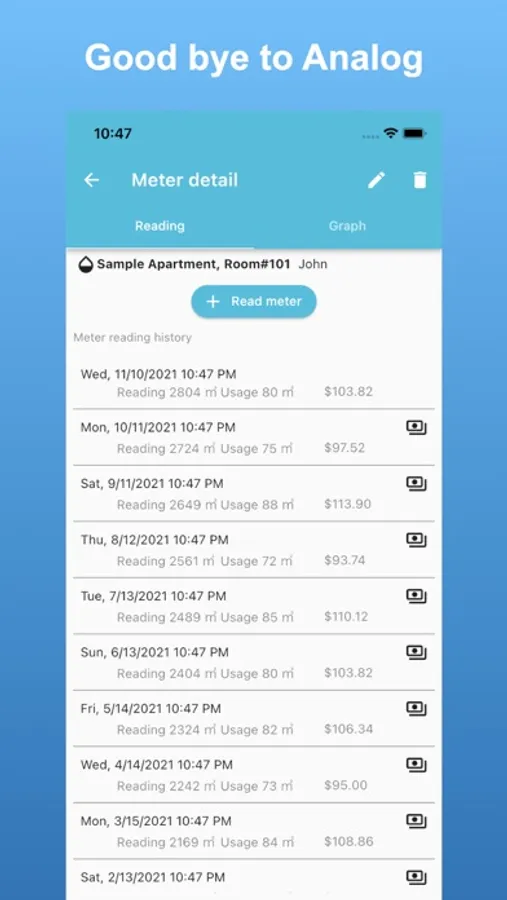 * Weekly, monthly, semi-annual, and annual meter readings can be graphed to visualize changes over time.
