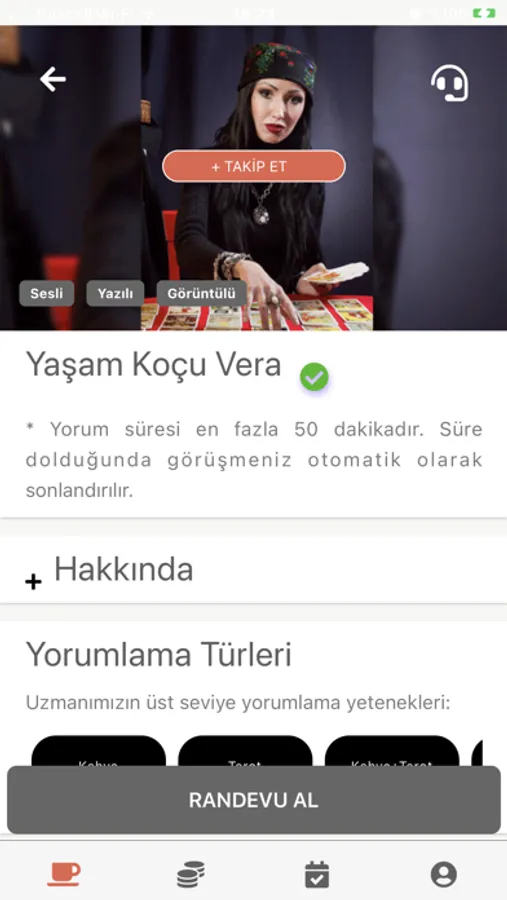► İster romantik ilişki durumunuzla ilgili tavsiye arıyor olun, ister önemli bir konuda karar verme aşamasında olun, ya da aşkta, kariyerinizde geleceğiniz hakkında bir ipucu sahibi olmak için; yorumcularımızla yapacağınız ufak bir sohbet, bir tarot falı ya da bir astroloji yorumu zihninizi rahatlatmanıza yardımcı olacak ve size ferahlık sağlayacak.