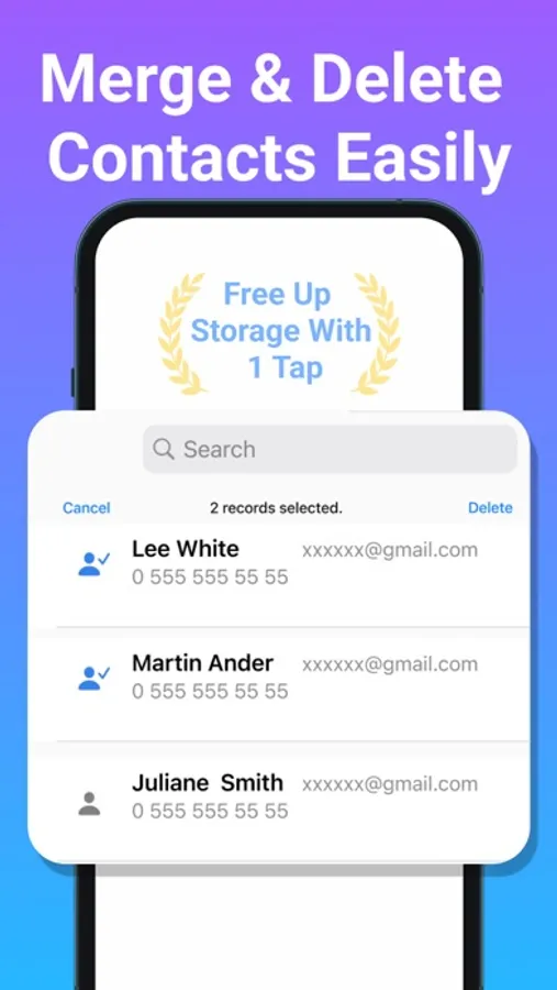 -Delete contacts with 1 tap