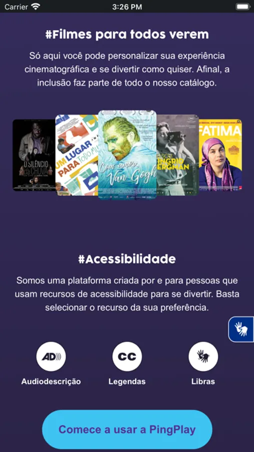 Só na PingPlay você pode escolher a melhor experiência de acessibilidade em vídeo, ou todas elas juntas, de acordo com a sua necessidade. Tudo isso em um catalogo super variado, com filmes atuais ou recém lançados, a um preço incrível e sem comerciais.