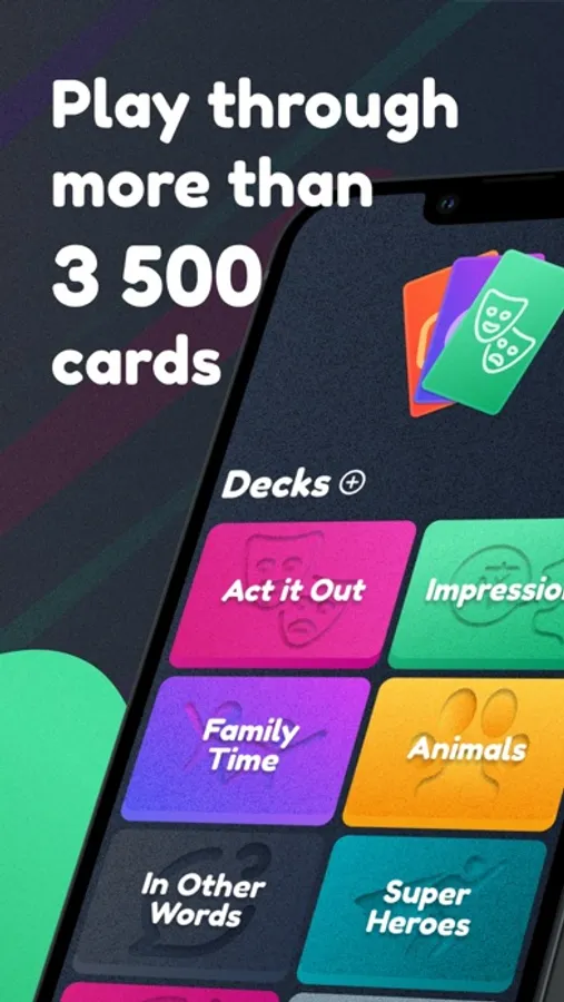 This is the official Charades game where your acting skills, vocabulary proficiency and storytelling abilities will be put to the ultimate test! Play through more than 3500 cards divided into 42 categories and decks today. You can even create your own decks!