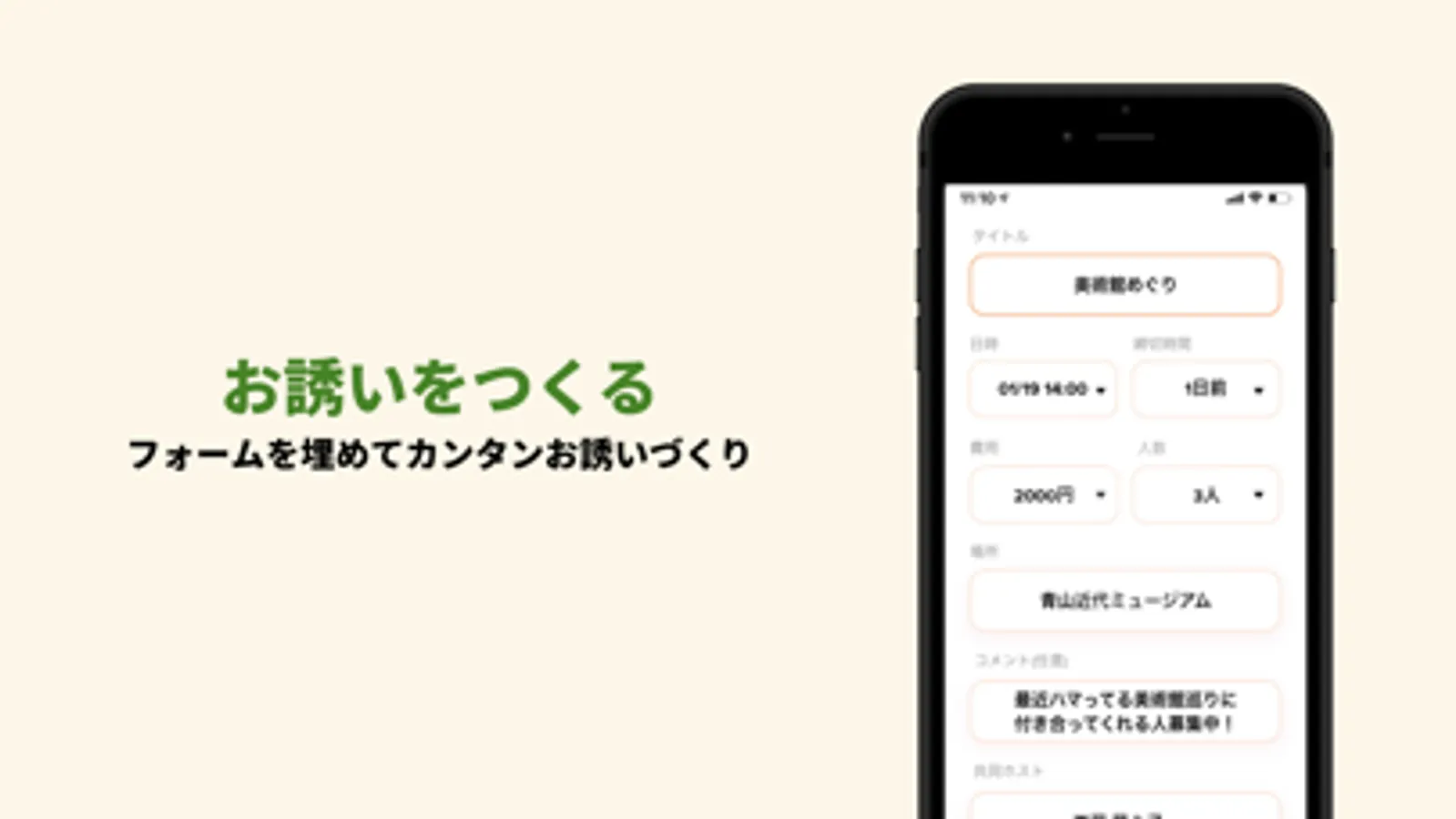 ③招待された友達が遊びに「行きたい!」ボタンでリアクションする。