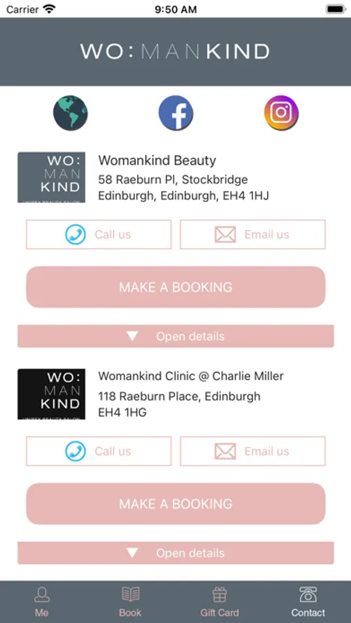 The WO:MAN KIND BEAUTY booking app allows clients to log on and make bookings online under their own profile 24/7. Clients can track loyalty points as well as look at historic and future bookings and get directions for their favourite salon.