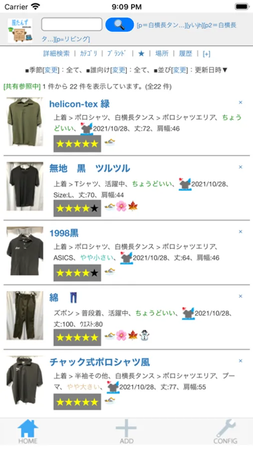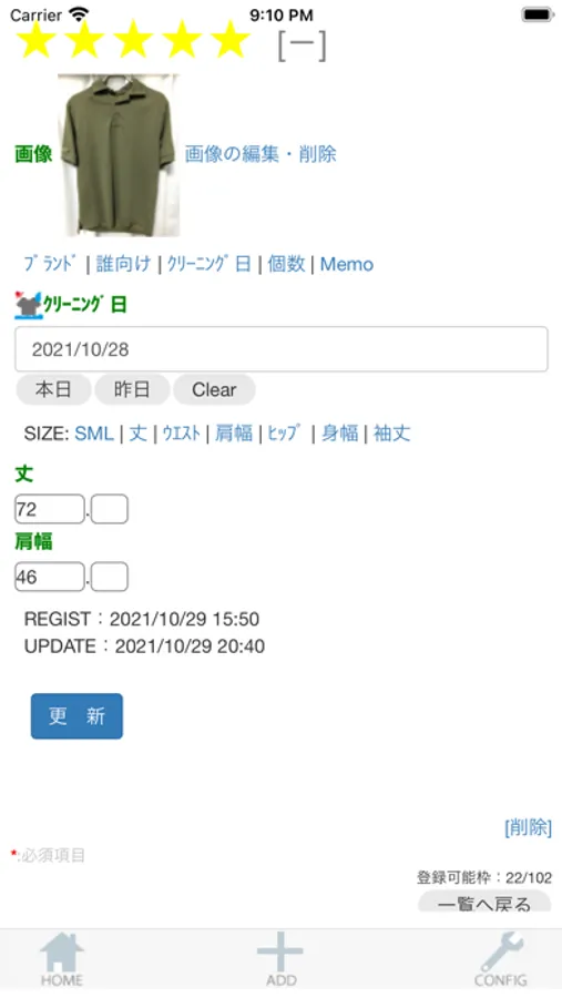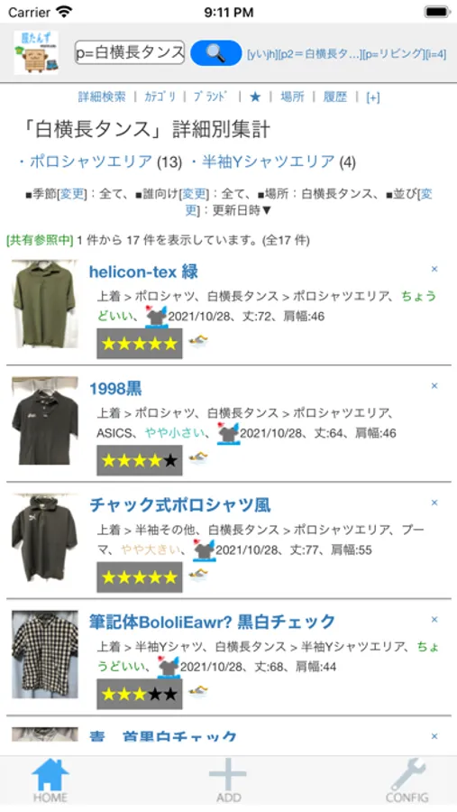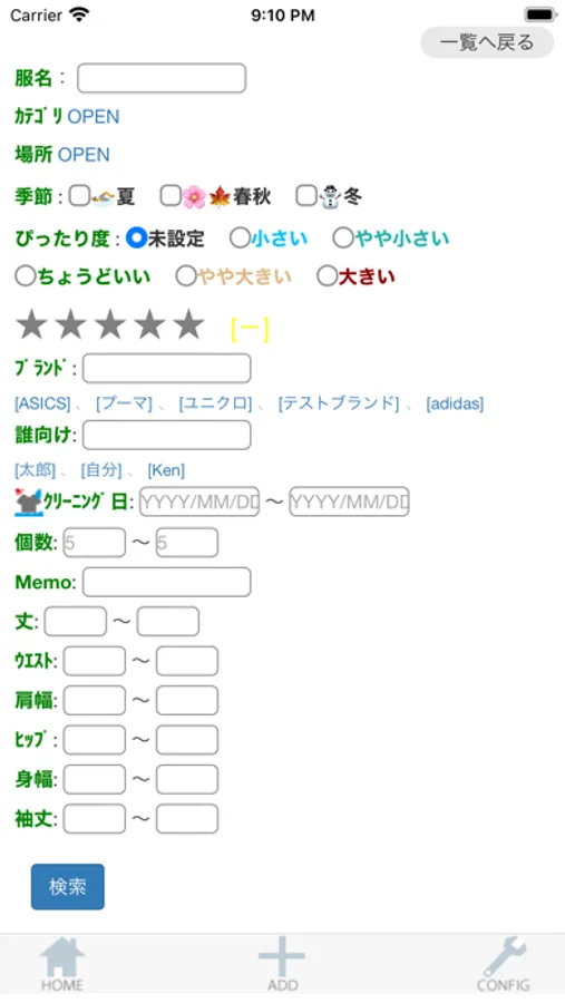 洗濯・クリーニング日を記録して管理、検索、並び替え等も可能です。