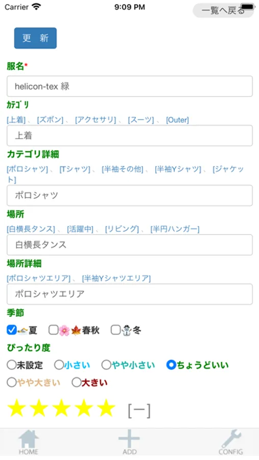 ダイエット等でやせたり、ふとったりで、多少サイズが変わっても、サイズを記録しておけば、服を実際に出して確認しなくてもサイズ感がわかる。