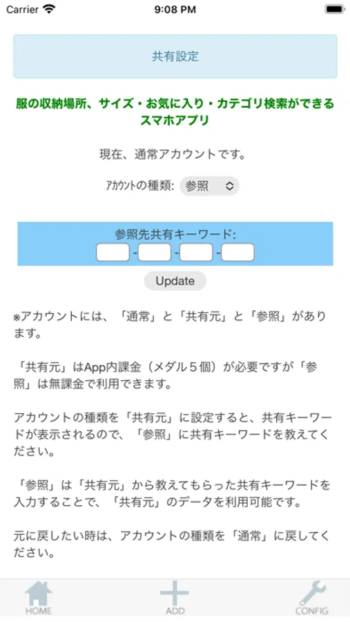(参照ユーザーや、共有しない通常ユーザーは無課金で利用可能、共有参照元ユーザーはApp内課金必要)