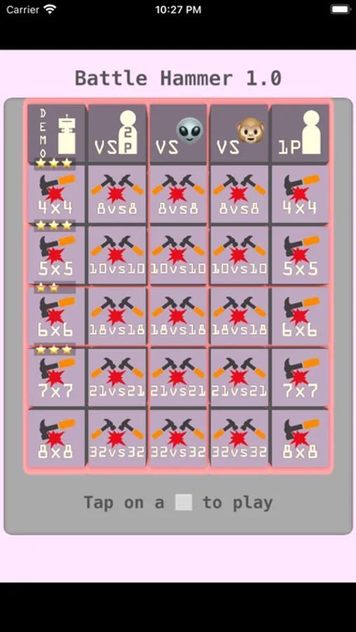 - Cubes are stacked on the game board in 4x4,5x5,6x6,7x7,8x8 stacks.