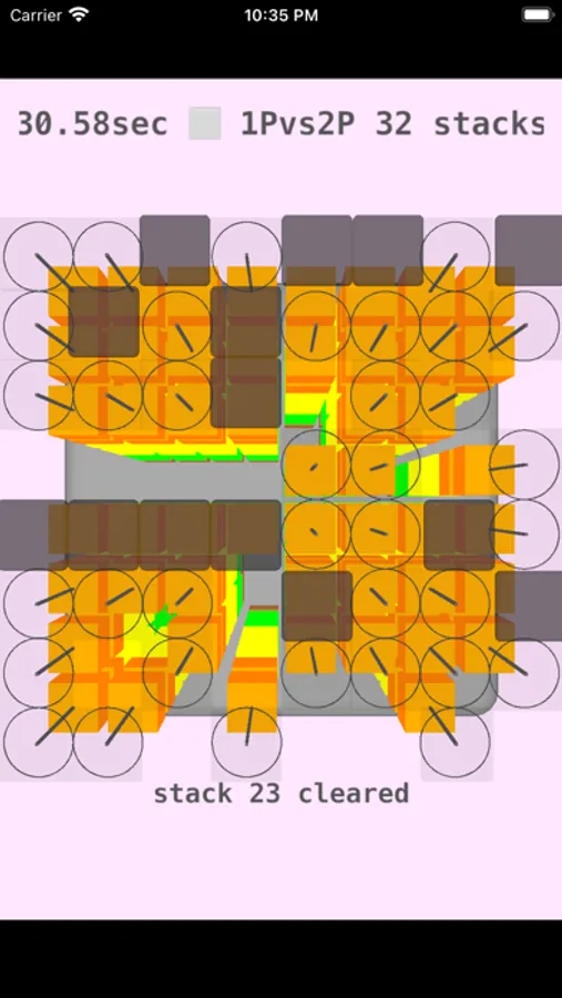 - By quickly hitting the circles, if a player completes a cube stack on his side, the cube stack in the relative mirror position is covered so that the opponent can no longer hit the cube stack.