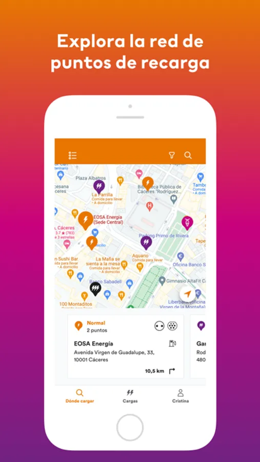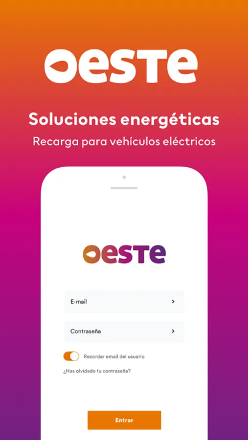 Recarga tu vehículo eléctrico con tu móvil de forma fácil con OESTE Movilidad. Conecta y recibe tu factura en tu móvil, no necesitas nada más: tu vehículo y tu teléfono.