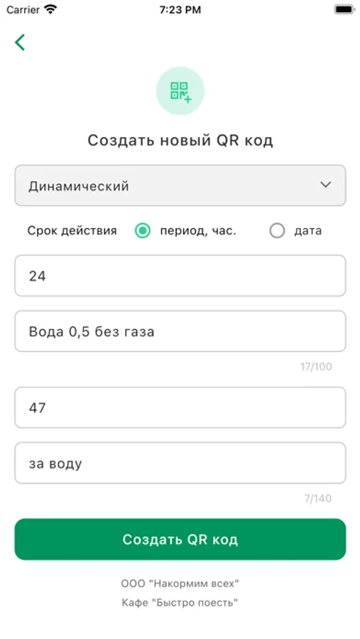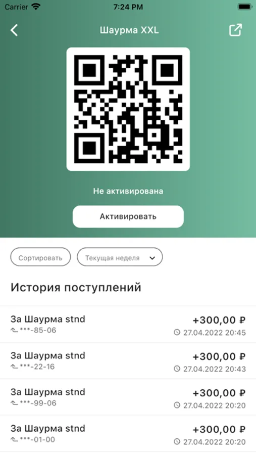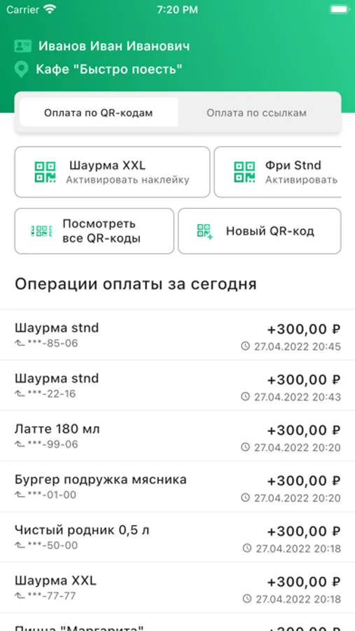 - формировать QR код для каждой оплаты непосредственно в торговой точке