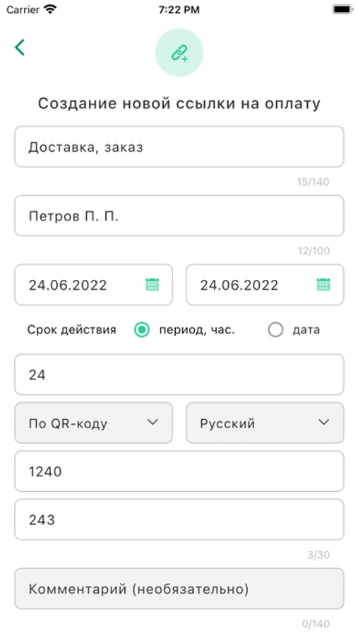 - создавать ссылку на платежную страницу и отправлять ее покупателю для дистанционной оплаты через СБП или по карте