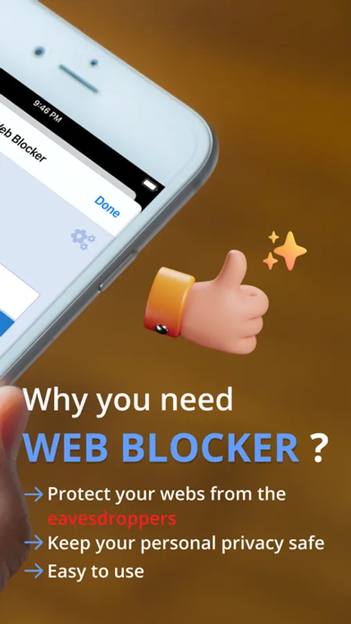 Using Web Blocker, you can protect your personal privacy from the eavesdroppers. All the chosen websites will be blocked with PIN code. You can also arrange the specific time to active your block.