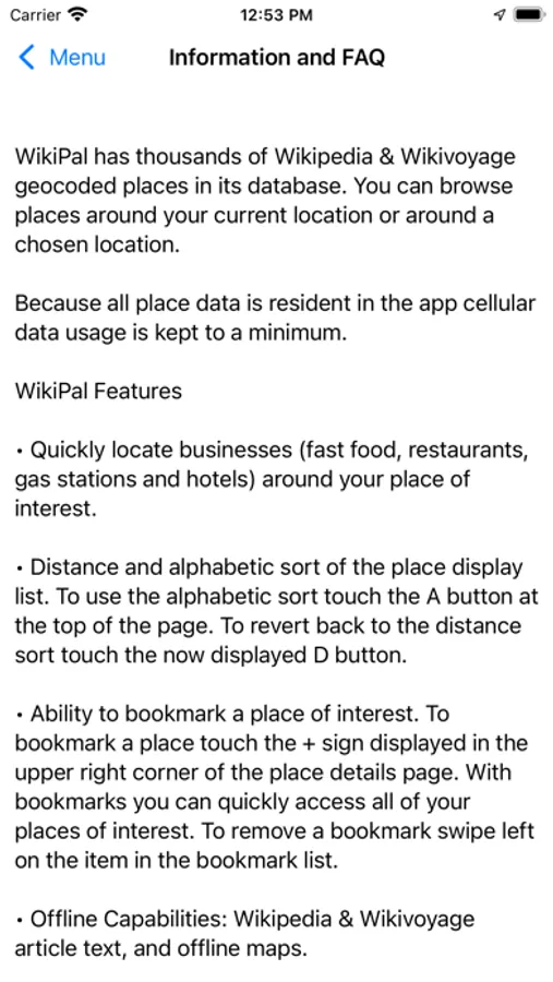 Offline Capabilities: Wikipedia & Wikivoyage article text and offline maps.