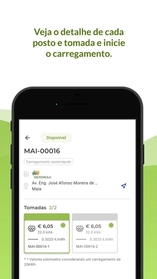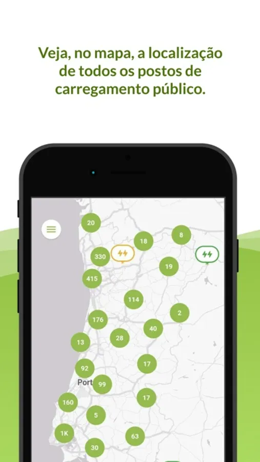 - Ver mapa de postos de carregamento, com indicação do estado e tipologia de tomadas e potência