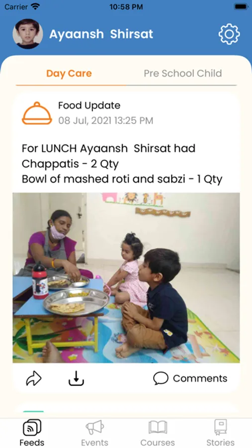 c) You'll also be able to see regular updates regarding meals, naps and entry and exit if your child takes the Mindseed Daycare program.