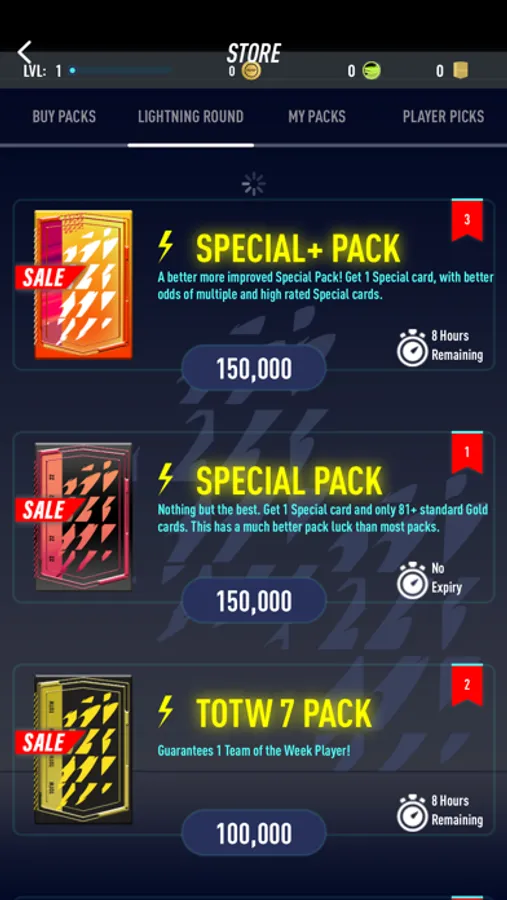•Open Packs: You can open different types of FUT Packs on the PAC FUT open packs mode. Many different types of packs are provided and many are added on each update and in the lightning rounds.