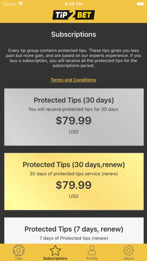 According to the payed section, you can find our Terms and Conditions on the following link: https://tip2.bet/terms-and-conditions