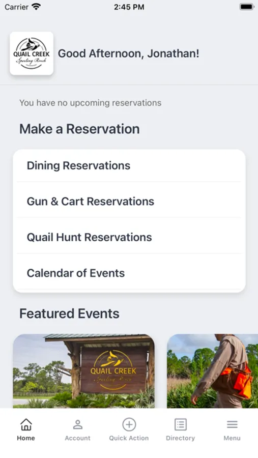Download the Quail Creek Sporting Ranch App to Easily:
