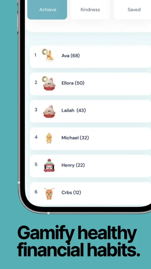 Achievement and depression are inversely related. Kids NEED to achieve and My First Nest Egg gives them that opportunity and then recognizes them for those accomplishments. My First Nest Egg has a community page with monthly leaderboards which track Achievements, Acts of Kindness, and Instances of Saving (not how much, how often). Kids can be inspired by other kids working towards the same lifelong habits. Parents can give their kids nicknames for the leaderboard, we use emojis instead of photos, and you will be asked if you want to opt-into the board.
