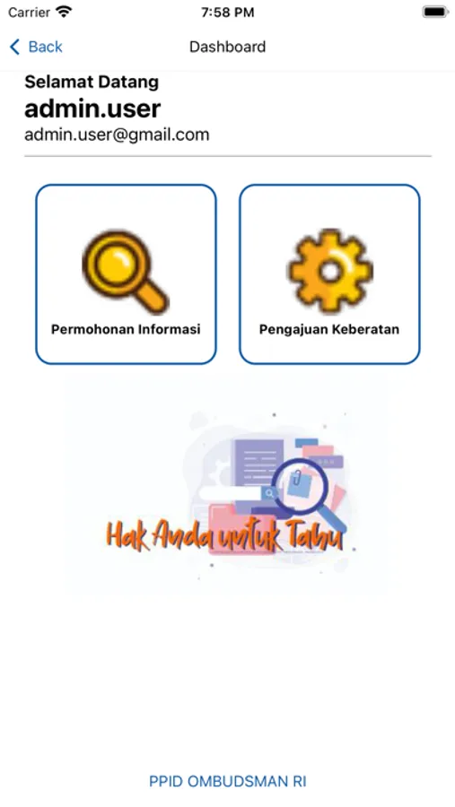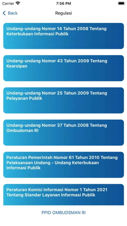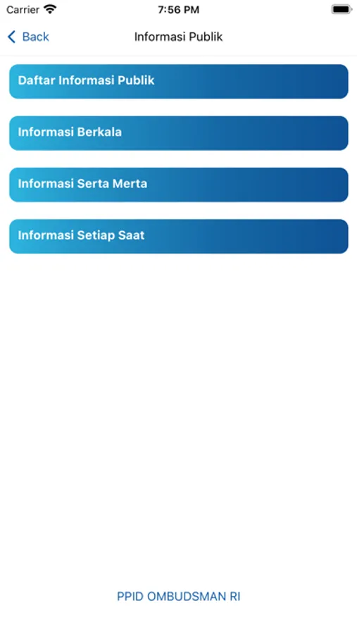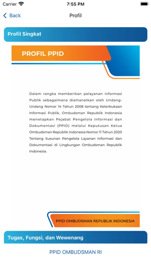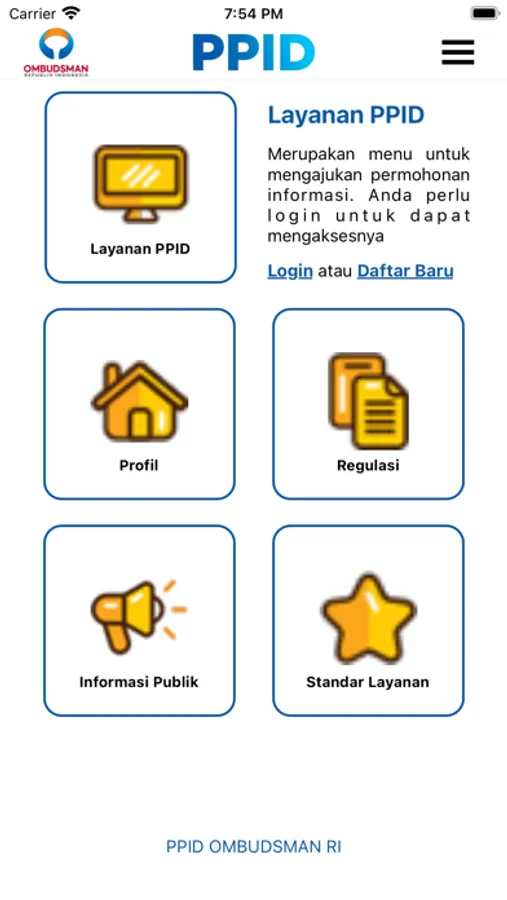 Aplikasi PPID Ombudsman Republik Indonesia merupakan sarana layanan informasi daring (online) yang dapat diakses Pemohon Informasi Publik secara mudah melalui perangkat gawai. Aplikasi ini menjadi salah satu wujud pelaksanaan keterbukaan informasi publik di lingkungan Ombudsman Republik Indonesia.