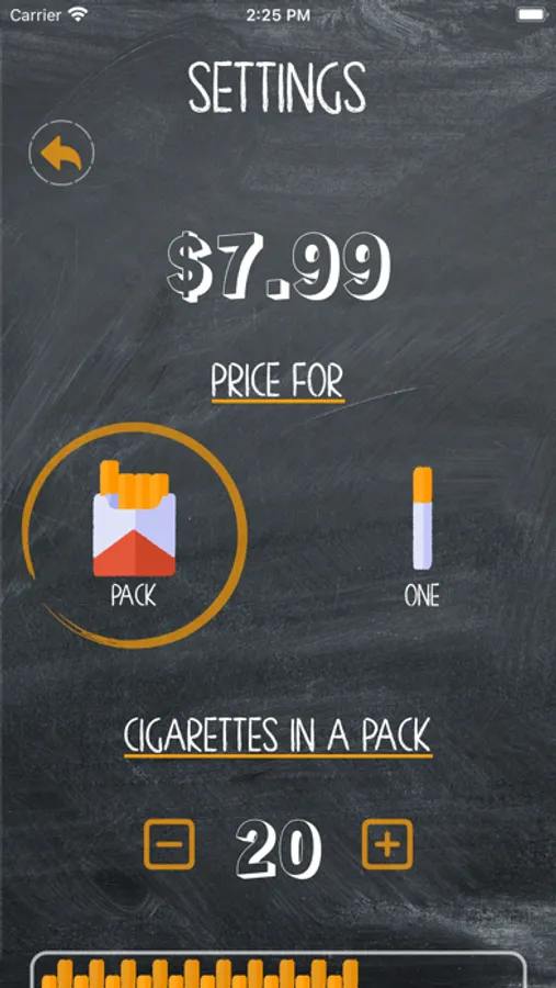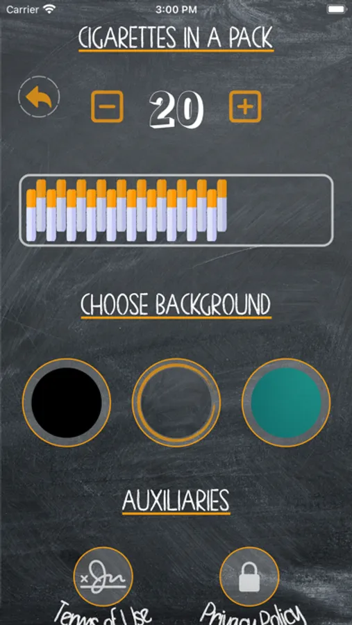 - smoke history, here you can track your every smoked cigarette on a timeline