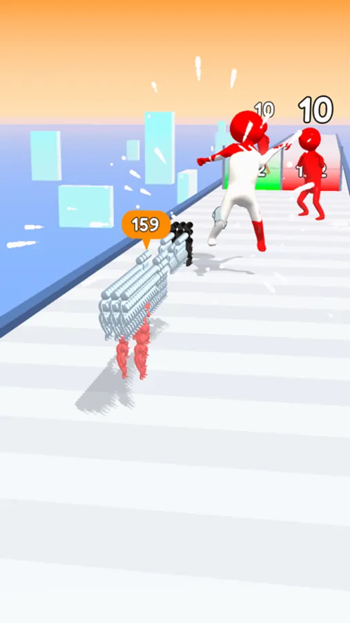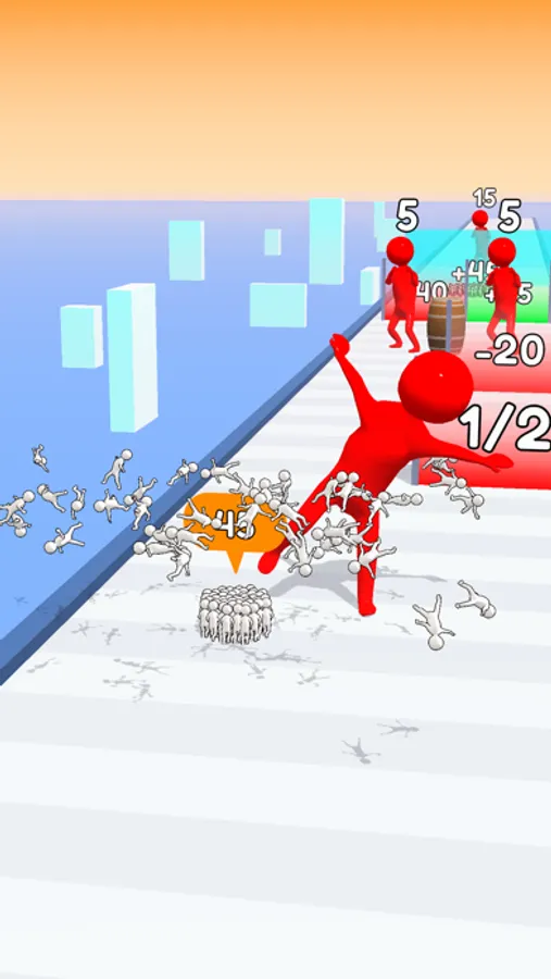 Move from side to side along the track and collect people into a huge crowd. When an enemy appears, TRANSFORM them into a firearm.