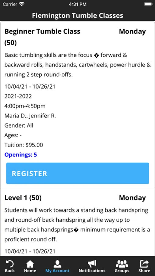 The Evolution Training Center app allows you to manage your account with ease, register for classes. You'll also receive important notifications about class changes, closings, registration openings, special announcements, and upcoming events.