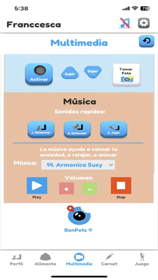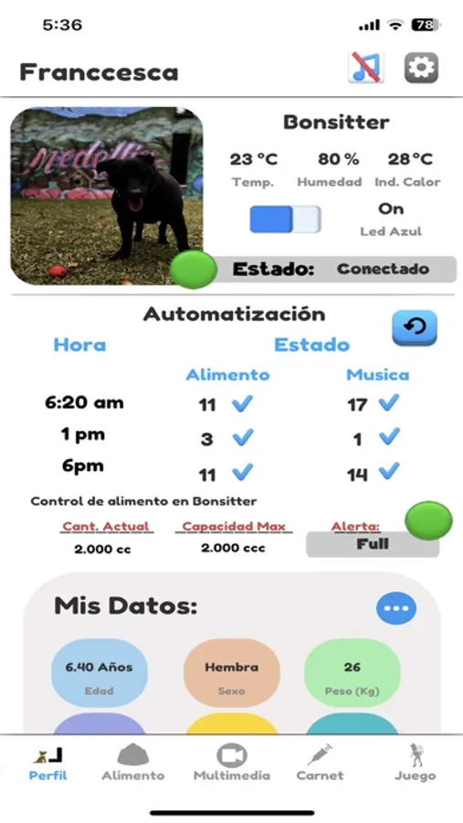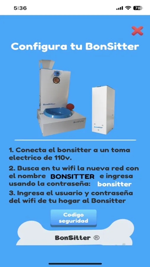 Que es el Bonsitter: Es un dispositivo físico que conectas a internet en tu casa para que a través de esta app puedas alimentar, ver, reproducir canciones y jugar con tu mascota.