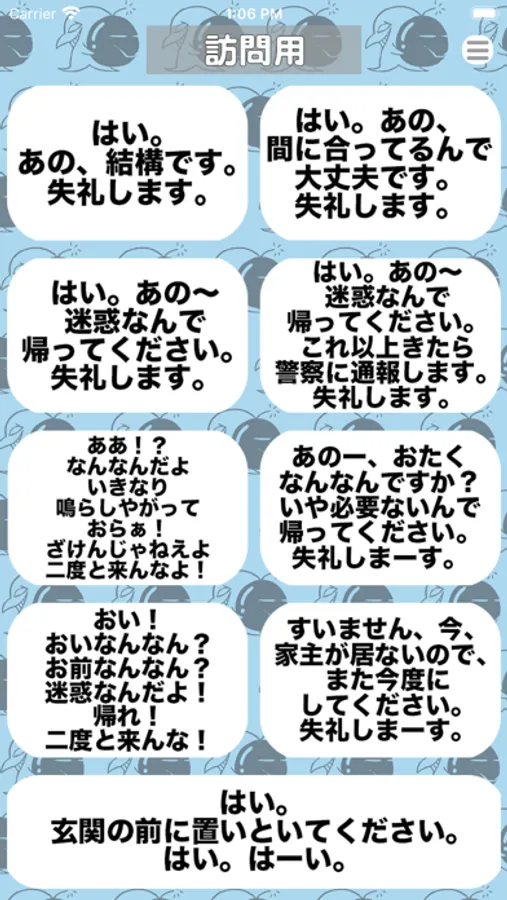 撃退したい迷惑電話・迷惑訪問の際などにお使いください。