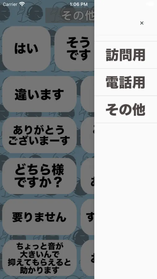 ・画面右上のメニューボタンから、「訪問用」「電話用」「その他」のページ切り替えを行えます。