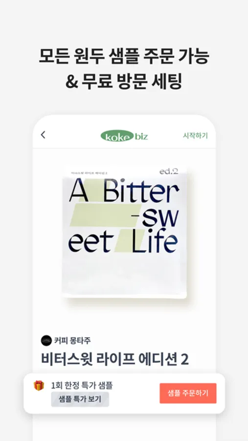가입만 하면 모든 원두의 샘플을 주문할 수 있어요.