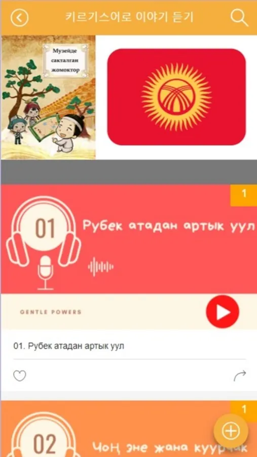 옛이야기 10개를 한국어, 러시아어, 베트남어, 스페인어, 영어, 중국어, 키르기스어로 번역되어 듣고 읽을 수 있습니다.