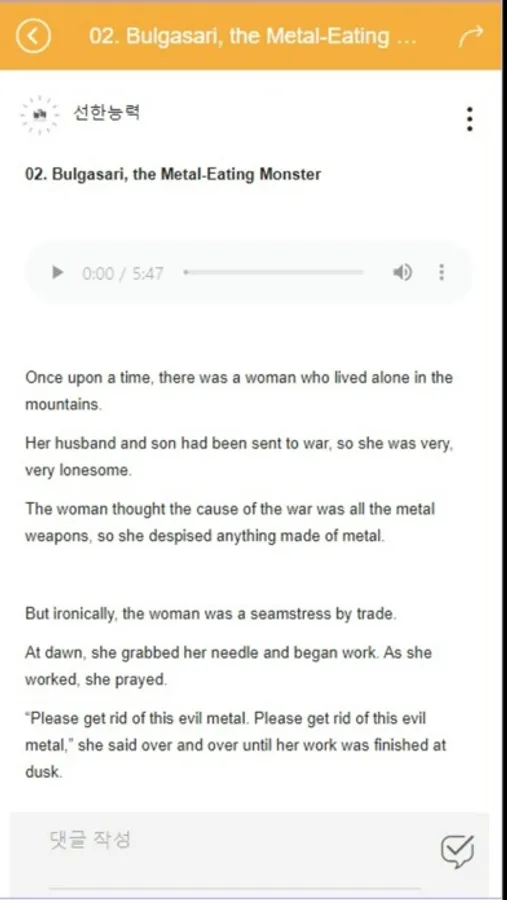 '옛이야기가 있는 박물관' 멀티미디어북의 이야기를 외국어로 들을 수 있는 오디오북입니다.