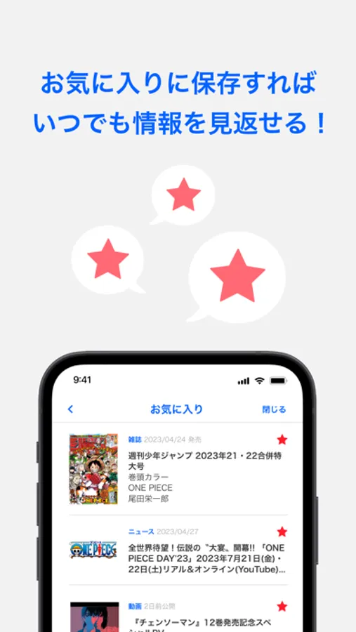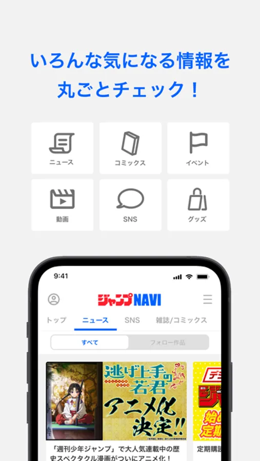 各作品の最新ニュースのほか、雑誌最新号やジャンプコミックス新刊のお知らせ、更にイベント情報まで全てカバー!