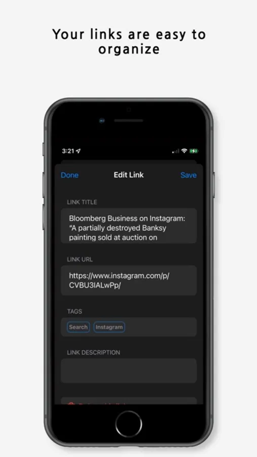 - Efficient search: Quickly find links with the built-in search function and group them by tags.