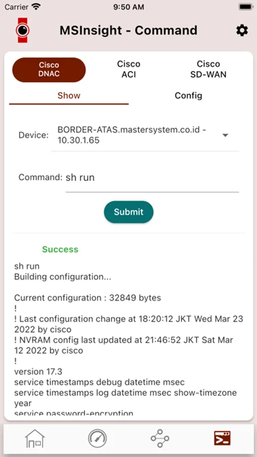 MSInsight is a mobile application for managing and monitoring your IT network infrastructure. MSInsight integrates with Cisco's networking platforms such as Cisco DNAC, APIC and vManage by using API.