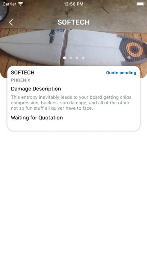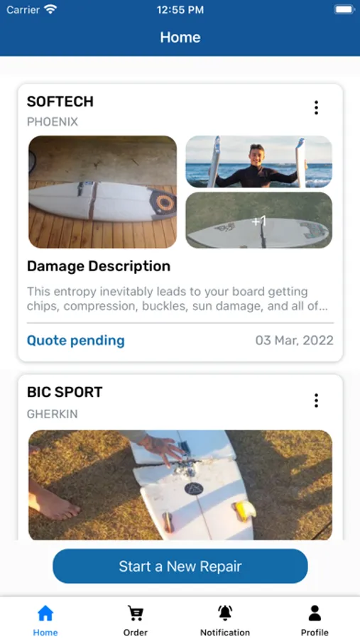 Surfboards are fragile! But you already know that, since you’re about to download a surfboard repair app. Actually, the worlds first (and to our knowledge) only surfboard repair app. Rogue Wave lets you upload photos of your damaged stick for a fast and guaranteed quote. Then, schedule a time for us to pick your board up from you, or see a list of partner surf shops nearby where you can drop off. Bada-bing, no more dings.